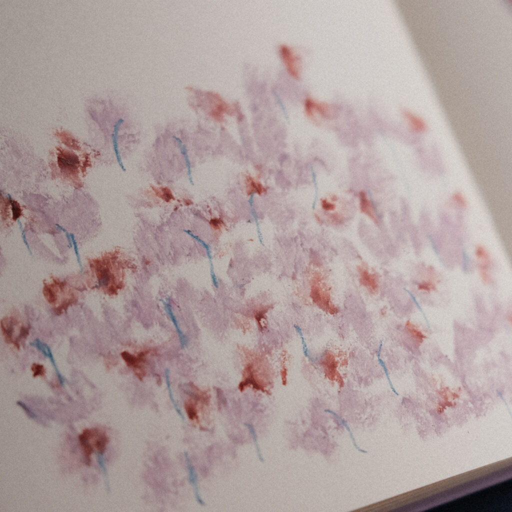 嗯,我和油彩一開始就建立在錯誤的交友方式,我對她太輕柔。油彩一直是我最少用的一種工具,應該說是「不」用的工具,我在速寫本上面一開始就用它是因為那時我的最多色畫畫工具,只有油彩。
