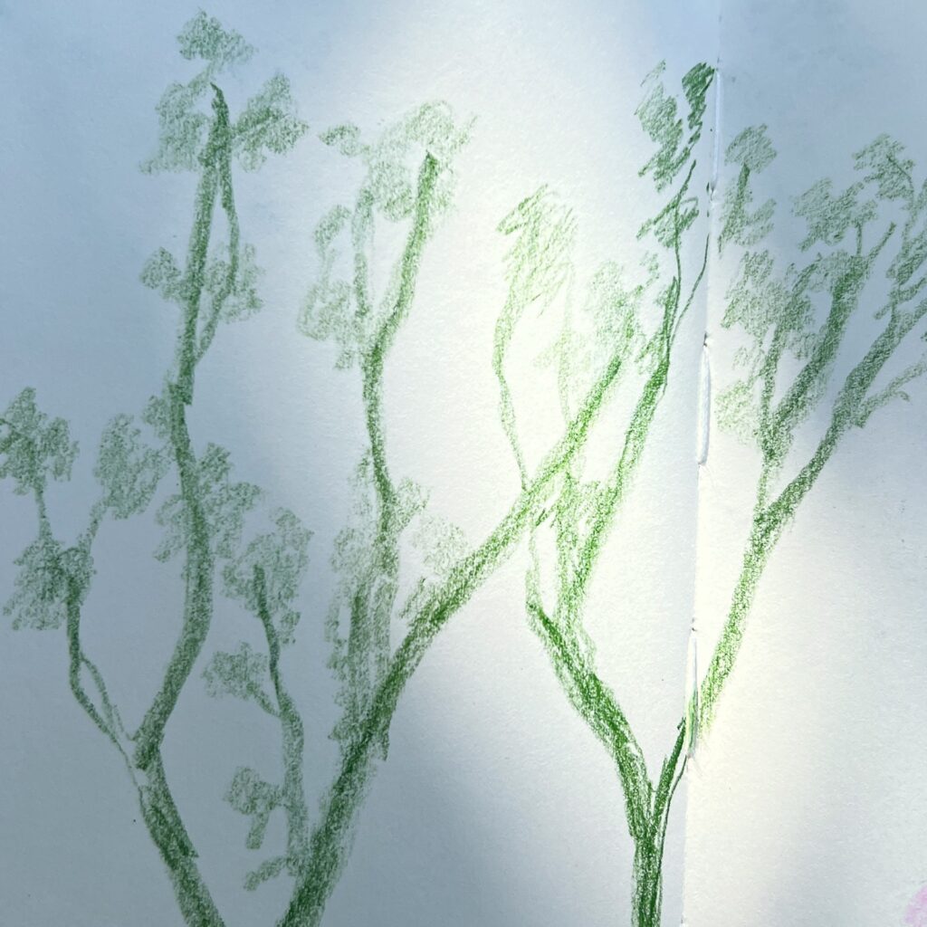 我先拍了一張照片畫了一次,又到現場畫了一次,我感覺我在畫它們時,畫感是一樣的,好像並没有在現場感覺到有太大的不同,除了太陽移動後體感變熱,我會繼續觀察下去。