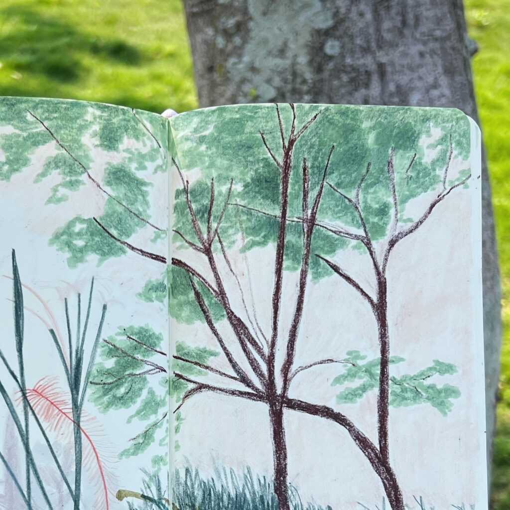 這天如果不要畫草的話其實已經快要變成滿版了,我一直在練習滿版,雖然並不真的喜歡,但我想先試試也没有什麼不行,現在畫畫時我會盡量把它延伸出去更多,看看有没有辧法變成滿版。