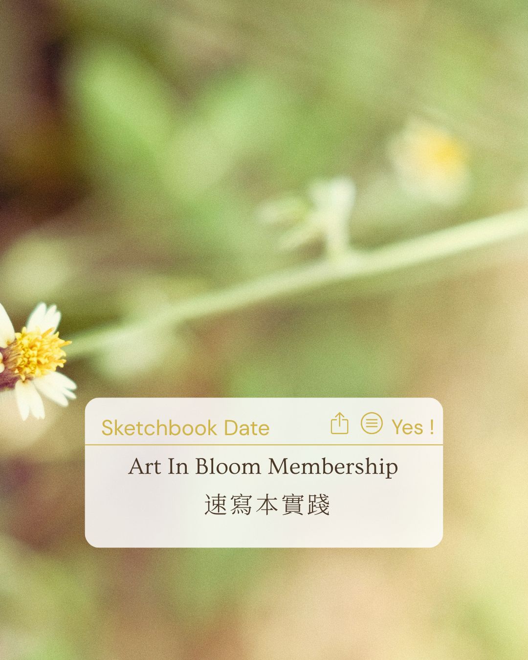 嗨,我是 yeeje ~我並不分享畫畫的步驟,我分享不同的方法,是希望你在其中找到屬於自己、適合自己的方式。 因為畫畫是一種語言,一種你自己的語言,具象和抽象都不是關注的地方,重要的是你,你想表達什麼?你的表達方式才是藝術創作如此不同的地方。 藝術綻放會員目前共有3個級別,blooming pool 靈感池、sketchbook date 速寫本創作實踐、sketchbook process 速寫本開發,點擊即可預覽、了解更多課程訊息。 願我們都能在畫畫的日常裡,閃閃發光!